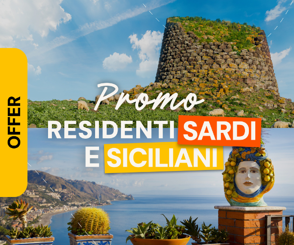 Se sei residente o nativo in Sardegna o Sicilia, ci sono le tariffe speciali a te dedicate Sardi Doc e Siciliani Doc. Per applicarle spunta la casella in basso a sinistra nel box di selezione del viaggio.