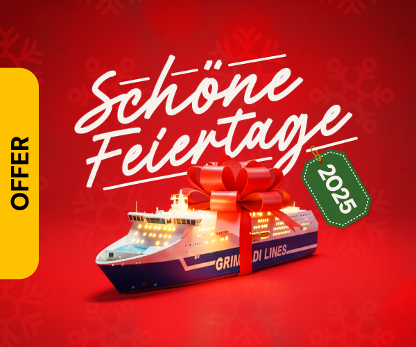 Willkommen beim Online-Booking von Grimaldi Lines. Um Ihre Reise zu buchen, wählen Sie den Zielort und die Abfahrtdaten im Suchfeld links aus. Fügen Sie die Passagiere, Fahrzeuge und Haustiere hinzu und klicken Sie auf die Schaltfäche "Suchen".